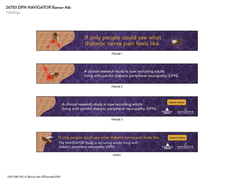 This DPN NAVIGATOR study had a concept that was very complex and dynamic. It was important to bring that dynamic quality to life for the advertising. We of course want to drive as many potential participants to the prescreening website as possible.